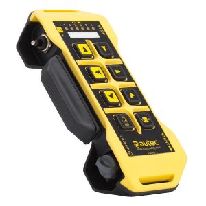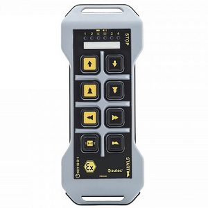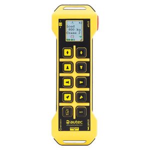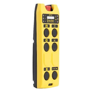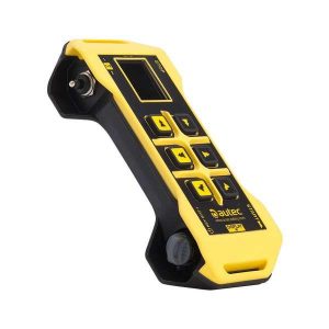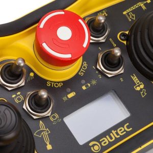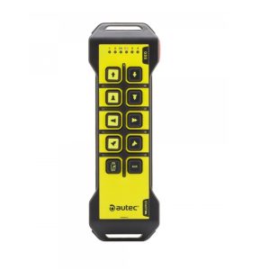 R-PRO AJT, özellikle şantiyelerde çok sayıda makineye kumanda etmek için yapılmış AUTEC boyutunda normal taşınabilir bir uzaktan kumandadır. Bu ürün en iyi performansı sunmak için özel olarak tasarlanmış birden fazla aktüatör, oyun kolu ve yan düğme ile donatılmıştır. İki çerçeve mevcuttur: biri veri geri bildirim sistemini barındırırken (bir ekran veya LED dizisi ile), ikincisi içermez. Bu, boyutu ve ağırlığı azaltarak operatör için ergonomik faydalar sağlar. Aksesuarlar Bel kemeri Omuz askısı Çıkarılabilir Li-Ion veya NiMH pil ve şarj cihazı Seçenekler 4,3" TFT LCD ekran (480x272 piksel, 65536 renk) 32 sinyal LED'i paneldeki LED'ler Kablo kontrolü Joystick için ek koruma Deniz ortamı koruması Zero-G ve IR sensörü harici sesli uyarı Aktüatörler Potansiyometre Çvirmeli anahtar Yaylı geçiş anahtarı Çalıştırmak için yaylı geçiş anahtarı Yan basma butonu Technical data Power supply 7.4 VDC with LPM02, LPM04 or MBM06MH battery Frequency band 870 - 915 MHz, FHSS Typical working range 100 m (330 ft) Average usage time with a fully charged battery (continuous use at 20°C / 68°F) with LPM02 battery : - 24 h without display with LPM04 battery : - 10 h with display 4.3” with MBM06MH battery : - 12 h without display Protection degree IP65, NEMA 4 Operating and storage temperature -20 °C ÷ +55 °C (-4 °F ÷ +130 °F) -40 °C ÷ +70 °C (-40 °F ÷ +158 °F) The safety performance of the GSS/EMS/ATS function fino a PL e, SIL 3 (EN ISO 13849-1/EN IEC 62061) Dimensions 289x231x199 mm (11.4x9.1x7.8 in) - with display 289x193x199 (11.4x7.6x7.8 in) - without display Weight 3,2 kg (7.1 lb)