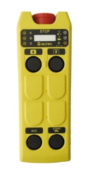 LK NEO 6 DF UZAKTAN KUMANDA SİSTEMLERİ-AIR SERİSİ LK NEO, kule vinçlerin, tavan vinçlerinin, hidrolik makinelerin ve sayısız başka mobil uygulamanın uzaktan kumandası için kullanılabilen, yüksek düzeyde yapılandırılabilir bir, basma butonlu, kablosuz kumanda verici ünitesidir. Bu ürün, mevcut birçok seçenekler ve 870/915 MHz'de FHSS'de (Frequency Hopping Spread Spectrum) otomatik serbest kanal arama özelliğine sahip çift bant radyo sayesinde, AIR Serisi teknolojisi kapsamında oldukça geniş bir kullanım yelpazesi açar. ACİL STOP işlevi PL e, SIL 3'e kadar sınıflandırılır (EN ISO 13849-1/EN IEC 62061'e göre). LK NEO, makine durumunun görselleştirilmesi için, 4 adet LED lamba ve uzaktan kumanda işlemlerinin kaydedilmesi için bir veri kaydediciye sahiptir. Radyo kontrol verici cihaz 6, 8, 10 ve 12 butonlu olarak tercih edilebilir. Ayrıca, özelleştirilebilir 1,8 inç renkli ekrana sahip (6 veya 10 butonlu) 2 farklı versiyonu mevcuttur. Bu basmalı butonlar aynı zamanda çoklu radyo kontrol çözümleri (çoklu vericiler, çoklu alıcılar) için kullanılabilir. Aksesuarlar; Ağır işler için uygun koruma kılıfı Omuz taşıma askısı Opsiyonlar; Çevirmeli kod anahtarı 2/3 posizyonlu switch Döner Switch Taşınabilir key Potansiyometre IR Sensör Zero-G Sensör Enable Switch 1.8 inç renkli ekran (6 ve 10 butonlu sistemlerde) External Buzzer Titreşimli alarm Technical data Power supply 3.7 VDC with Li-ion battery 3.6 VDC with NiMH battery Frequency band 433.05 - 434.79 MHz (64 channels) 915-928 MHz (255 channels) Typical working range 75-100 m (240-330 ft) Average usage time with fully charged battery (continuous use at 20°C / 68°F) > 20 h with Li-ion battery > 10 h with NiMH battery Safety performance of the STOP function (EN ISO 13849-1) up to PL d Protection degree IP65 (NEMA 4) Operating and storage temperature operating: (-20 °C) ÷ (+55 °C) / (-4 °F) ÷ (+130 °F) storage: (-40 °C) ÷ (+70 °C) / (-40 °F) ÷ (+158 °F) Dimensions 207.5 x 85 x 49 mm 8.17 x 3.35 x 1.92 in Weight 380 g 0.837 lb